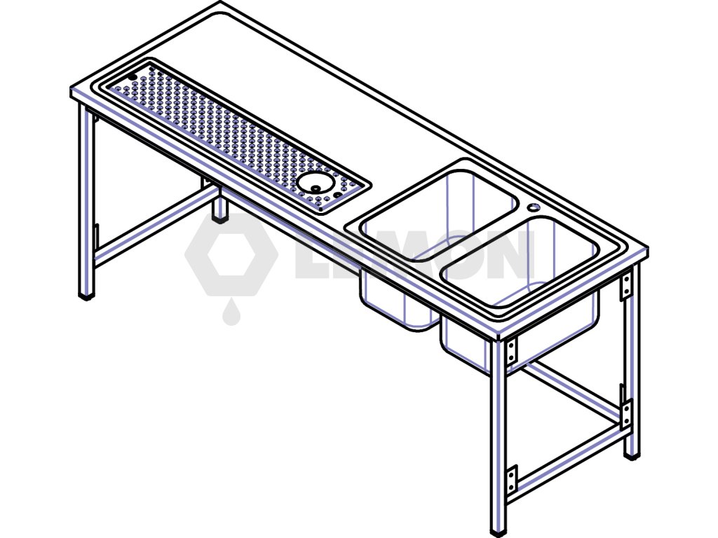 Nerezový výčepní stůl s odkapní vaničkou s ostřikem a dvěma dřezy, 2000x700