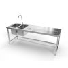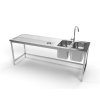 Nerezový výčepní stůl s odkapní vaničkou s ostřikem a dvěma dřezy